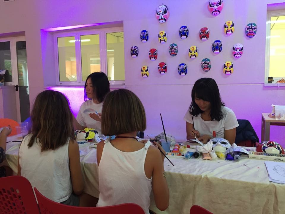与此同时,一楼庭院的各类文化工作坊也吸引了大批市民:茶艺、书法和美食这些中国文化中不可或缺的元素在文化开放日中自然不可缺席,而马德里Galatea剧社用西班牙语表演的《盘古和女娲》则用西班牙少儿喜闻乐见的方式吸引了很多小观众,少林功夫传人将武术与太极相结合的表演更给对中国功夫痴迷的观众留下了深刻的印象。另一项深受小朋友喜爱的活动就是画脸谱,虽然那些脸谱之下复杂的意义他们还不能一一了解,然而就在这种潜移默化下他们接近并喜爱了中国文化。马德里孔院还请到了网络人气漫画家、GazpachoAgridulce的作者QuanZhou做客孔子学院日,与观众分享在两种文化中成长的心路历程。