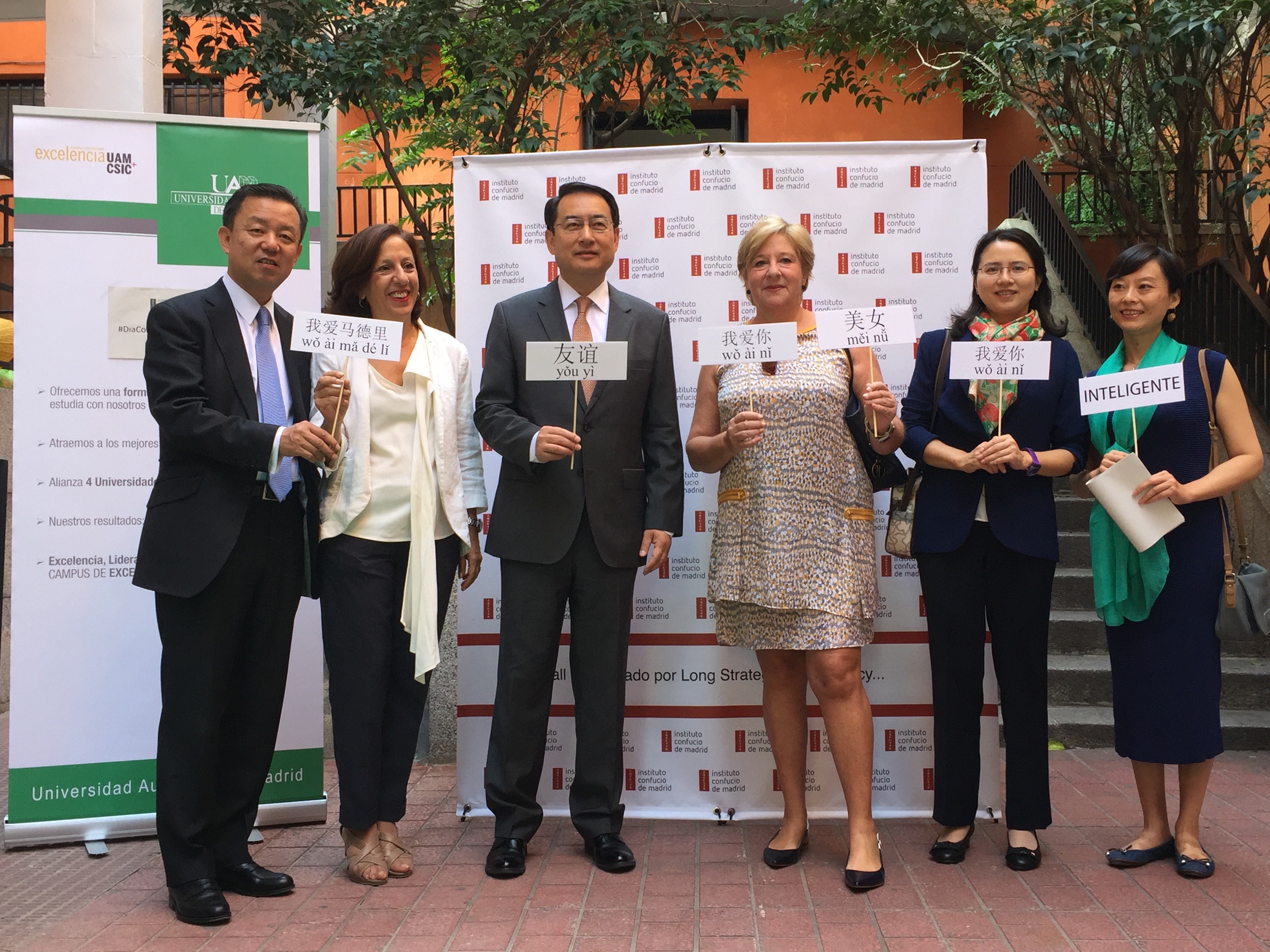 中国驻西班牙大使吕凡先生、中国驻西班牙使馆教育组负责人钟熙维女生、马德里中国文化中心主任罗君参赞、亚洲之家马德里中心主任特蕾莎·古铁雷斯·德尔·阿拉莫女士、BeatrizGalindo中学校长卡洛斯·罗梅罗·阿依雷斯先生等应邀出席了开幕式。开幕式在二楼礼堂举行,马德里孔院外方院长伊莎贝尔·塞尔维拉首先回顾了马德里孔院迁入新址后一年来的工作情况,并且提出了建立孔院会员俱乐部的新设想。随后吕凡大使为活动致开幕辞,肯定了孔子学院在推动中国语言文化传播中的积极作用以及马德里孔院所取得的成绩,并衷心祝愿孔院日活动圆满成功。