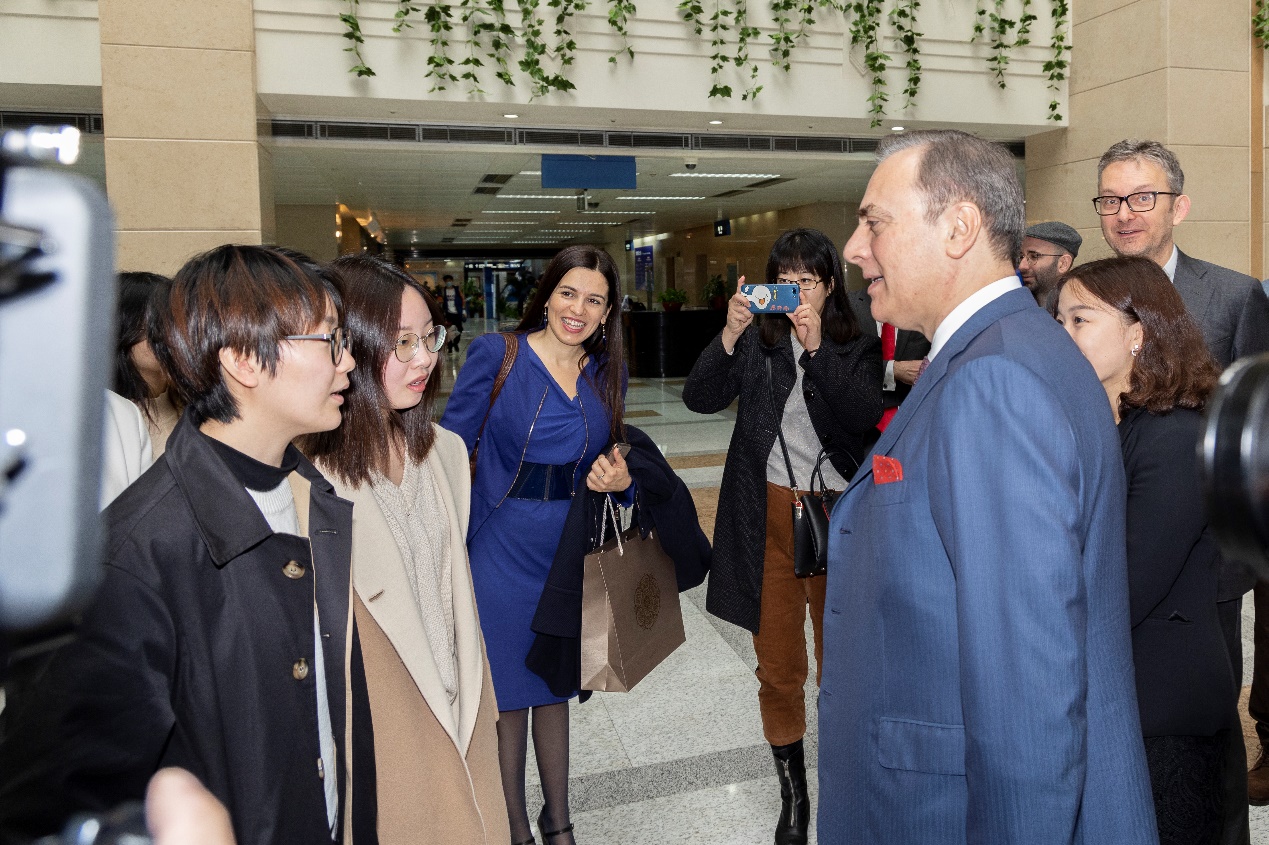 活动结束后,方澜意大使与我校师生进行了亲切交谈,询问了他们在上海外国语大学的学习感受,并对他们的学习与工作表达美好期许。大使说,意大利企业对中国市场的需求日益增大,必然为意大利语学习者们提供更多的发展机遇。他也希望同学们在学习专业知识的同时,不要忽视阅读书籍的重要性。