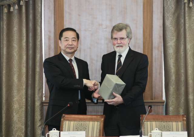 薛沛德校长则介绍了澳门圣若瑟大学的简况。该大学创立于1996年,由葡萄牙天主教大学和天主教澳门教区合办。大学下设行政及公共管理学院、创意产业学院、心理及教育学院、科学及环境研究所等学院,实行全英文授课,同时教授中文及葡文。薛沛德校长十分期待能够与上外加强合作,扩大交流,尤其在葡语教学方面能够获得更多的合作机会。