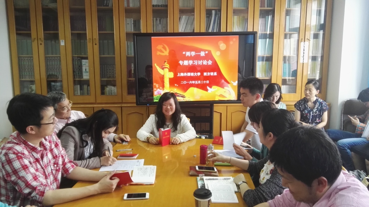 根据上级文件精神和学校党委“两学一做”学习教育方案的要求,西方语系积极推进“两学一做”学习教育活动。五月20日,西方语系教工党支部召开 “如何结合专业做合格党员”专题组织生活会,支部全体党员教师参加了此次学习讨论。