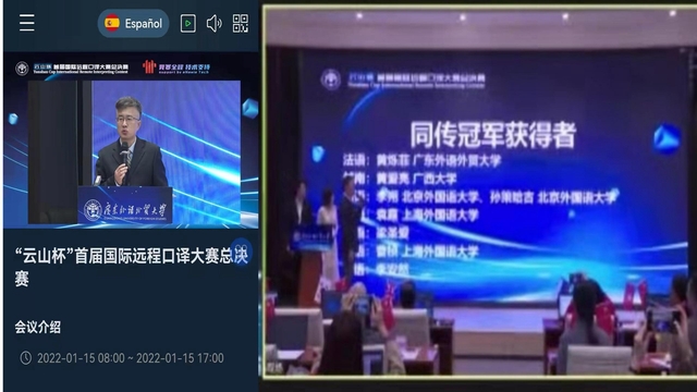 2022年1月15日,“云山杯”首届国际远程口译大赛决赛如期举办,我系两名2021级硕士研究生斩获优异成绩,曹桢同学荣获西班牙语同传组冠军,沈雷同学荣获西班牙语交传组冠军,彰显了我系西班牙语学子强劲的专业实力。