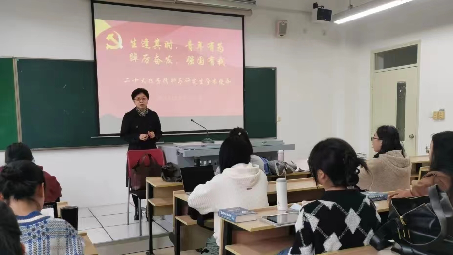 11月14日上午,西方语系系主任于漫教授以“生逢其时,青年有为,踔厉奋发,强国有我:二十大报告精神与研究生学术使命”为题,向西方语系2022级硕士研究生们讲述了一堂精彩的党课。