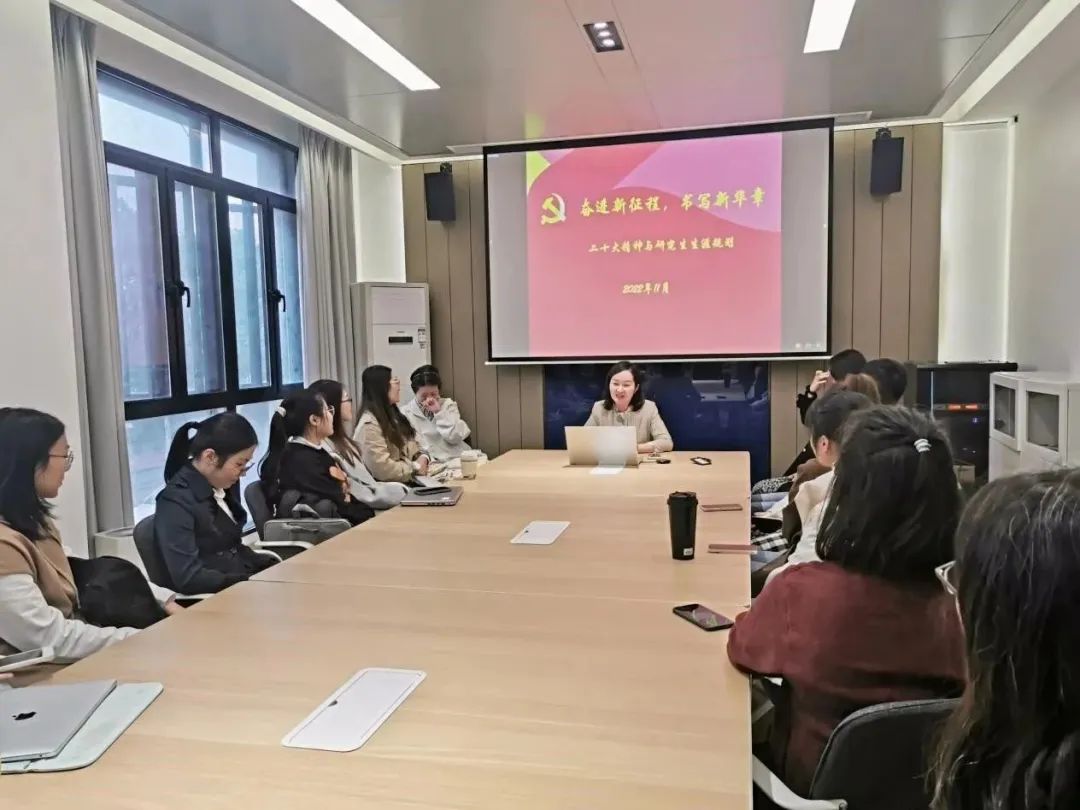 2022年11月22日,西方语系党总支副书记张敏老师以“奋进新征程,书写新华章——二十大精神与研究生生涯规划”为题,向2022届全体研究生开设了二十大精神和生涯规划相结合的专题党课。