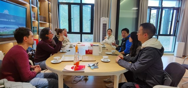 座谈会上,杨明老师通过分享外事接待工作中的亲身经历,讲述了通过同各语言对象国驻华使领馆的文化教育交流合作,推动西方语系的国际合作交流工作,助力各专业外语教学科研工作的生动故事,并向外教们积极宣讲我校外专校聘高级专业技术岗的相关工作开展情况。张敏老师通过介绍过去五年国家取得的工作成就和新时代十年的伟大变革,着重向外教展示了在中国共产党的领导下,中国人民全面贯彻新时代中国特色社会主义思想,踔厉奋发、勇毅前行,为全面建设社会主义现代化国家、全面推进中华民族伟大复兴而团结奋斗的历程。外教们则结合自己在中国工作生活多年的经历,就中国共产党取得的伟大成就和突破性进展发表了各自的见解。参与中国共产党国际形象网宣片《CPC》脚本翻译工作的两位外教Ylenia和Victória还分享了完成此项工作的收获与感受。Ylenia表示很高兴能参与宣传视频的翻译工作,她认为这对于外语教学者和学生而言都是很好的实践机会,并以翻译工作为契机,更加深入地了解到中国的发展道路和现代化进程。Victória表示很荣幸参与《理解当代中国》葡萄牙语系列教材校对工作,与中国教师开展科研合作和文化交流的过程也是自我提升的过程。座谈会现场气氛热烈融洽,外教们纷纷表示希望今后能有更多互动交流的机会,共同探讨相互学习,为上外外语教学的发展与创新贡献力量。
