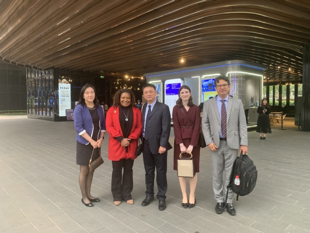2023年4月13日下午,我系葡语教研室主任徐亦行教授、巴西研究中心主任张维琪副教授赴复星艺术中心,与到访的巴西联邦共和国政府文化部长玛格丽特·梅内塞斯(Margareth Menezes)一行见面交流。两位负责人向梅内塞斯部长简要介绍了我校葡萄牙语专业及巴西研究中心情况。言谈中,梅内塞斯部长表现出对中巴文化交流、高等教育交流等事务的浓烈兴趣。文化部办公室主任弗朗斯西科·格雷罗(Francisco Guerreiro)、我系葡语专业专家艾莉(Victória Almeida)等也参与了交流。
