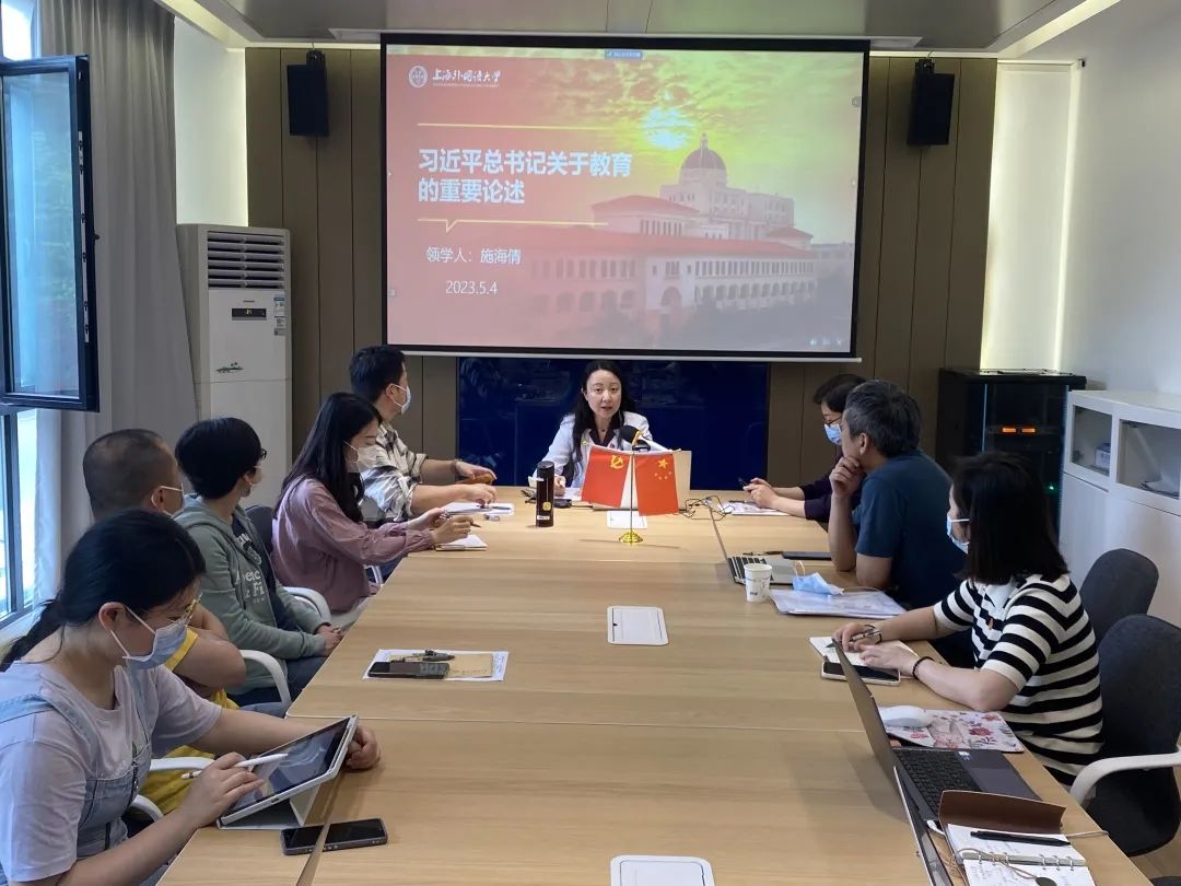 5月4日,西方语系党委书记施海倩就习近平新时代中国特色社会主义思想关于教育的论述开展领学,系领导班子成员和教工支部全体党员、学生党员代表等参加集体学习研讨。施海倩书记带领与会同志就习近平总书记关于加强党对教育工作的全面领导、落实立德树人根本任务、注重提升全民族素质、坚持以人民为中心发展教育、主动融入新发展格局、全面深化教育领域综合改革、坚持优先发展教育事业、扩大新时代教育对外开放等方面的论述展开研讨学习,尤其是深入学习了习近平总书记给北外老教授们的回信,详尽分析了回信回答的关于外语院校培养什么人、怎样培养人、为谁培养人的根本问题。与会同志围绕外语院校如何更好地实现立德树人、高等教育转型发展、教育公平等问题进行了深入探讨和交流,大家纷纷表示在新时代背景下,外语院校应坚守本位、提升站位,实现战略转型,面向全球办学治校,立足服务于国家发展大战略、大格局、大使命来谋划自身改革发展,培养有家国情怀、全球视野和专业本领的复合型外语人才,发扬传帮带、传承红色基因、提高育人水平,为党育人、为国育才。