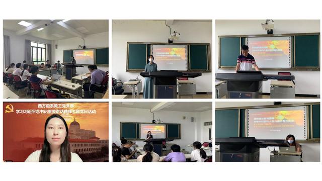 为进一步推动学习贯彻习近平新时代中国特色社会主义思想主题教育走深走实,深入学习习近平总书记重要讲话精神,6月5日,西方语系教工党支部根据学校主题教育工作提示要求,开展“加快建设教育强国,为中华民族伟大复兴提供有力支撑”学习习近平总书记重要讲话精神主题党日活动,全体教职工党员参加活动。