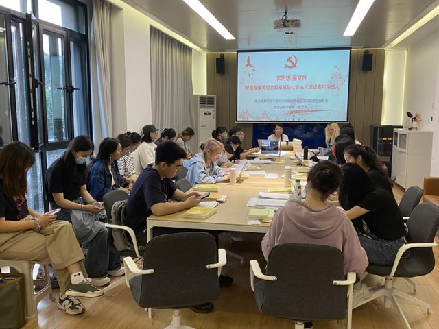 6月8日下午,西方语系学生第一党支部围绕“新时代中国特色社会主义思想的精神实质和丰富内涵”,由党支部书记黄欣悦领学,支部全体党员集中学习了《习近平新时代中国特色社会主义思想专题摘编》第一部分,通过认真阅读原文,深入领会十四个坚持的内涵和重要意义。党员同学在交流研讨中表示,通过理论学习,进一步认识到新时代中国特色社会主义思想是马克思主义中国化、时代化的新成果,作为大学生党员,要坚定不移地听党话、跟党走,不断锤炼品格意志,提升思想境界。