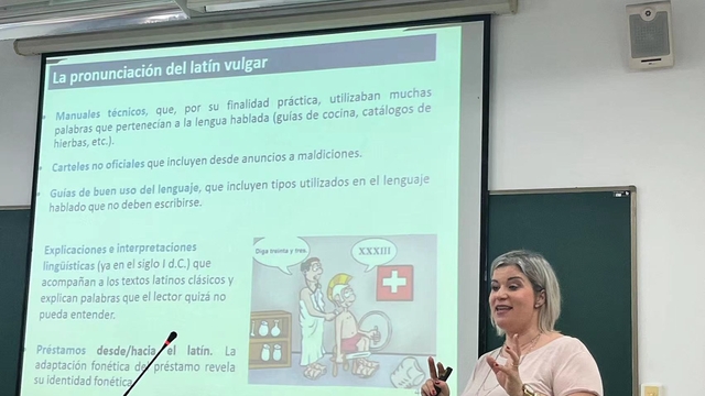 西班牙语讲座题目为:《西班牙语演变的历史文化概述》,莱昂利迪教授带领大家穿越西班牙语的悠久历史,探索其丰富的发展轨迹。从古代的拉丁语演变到中世纪的各种方言融合,再到近代的标准化和全球传播,西班牙语的发展充满了多样性和变化,全面展现了希腊、罗马、阿拉伯等语言文化在西班牙历时发展进程中的影响,探讨了西班牙语在伊比利亚、拉丁美洲和其他国家地区的演变。通过深入探讨这些元素的融合与交流,使大家更好理解西班牙所承载的丰富多彩的历史与文化。