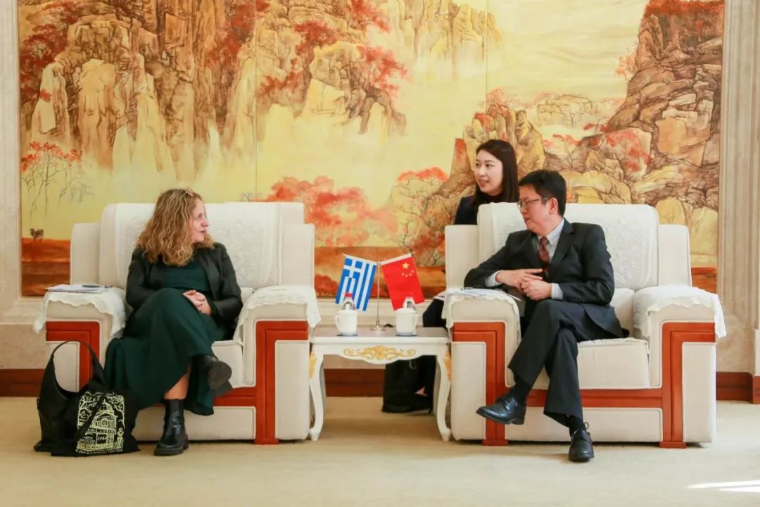 会见结束后,梅丽娜·塔米奥拉齐女士一行参观了西方语系,走进希腊语专业课堂,向学生介绍了克里特大学的校园风貌、特色学科和科研项目,并与师生就语言学习、中希文化交流等主题进行了互动交流。
