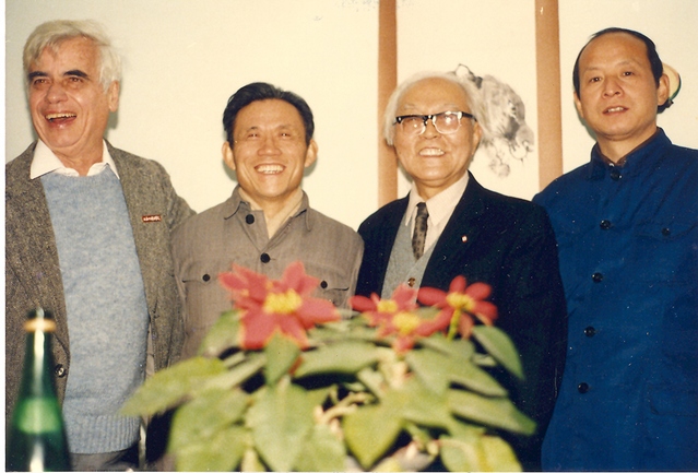 (西语外教与教师合影,从左至右:外教、孙义桢、浦允南、张绪华)