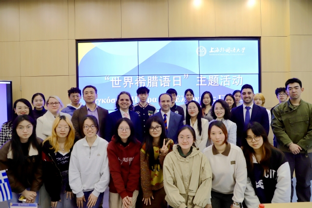 3月19日下午,2025年“世界希腊语日”主题活动在上海外国语大学图书馆数字学术中心举办。西方语系副主任王建全、希腊驻沪总领事乔治·帕特纽(Georgios Patheniou)先生、希腊驻沪总领馆公共外交领事詹姆斯(Dimitrios Foukis)等嘉宾出席此次活动。活动由西方语系希腊语专业负责人、希腊研究中心主任胡晶晶主持。