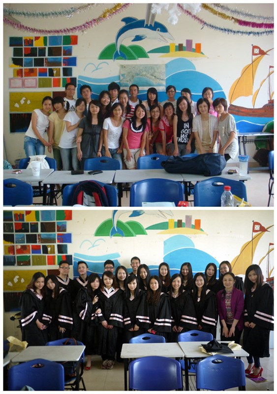 (与第一届学生的合影,外教一排左4,王锁瑛一排右5,张一排右4)